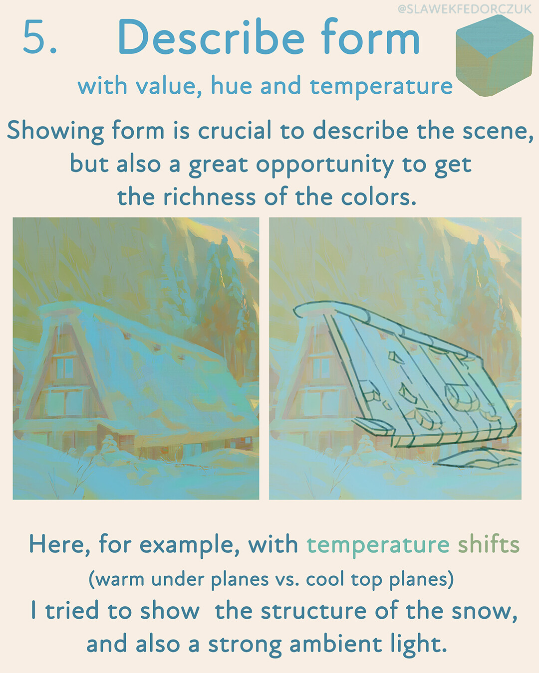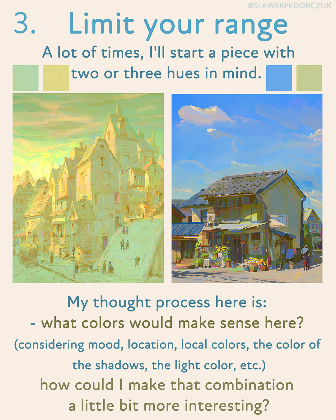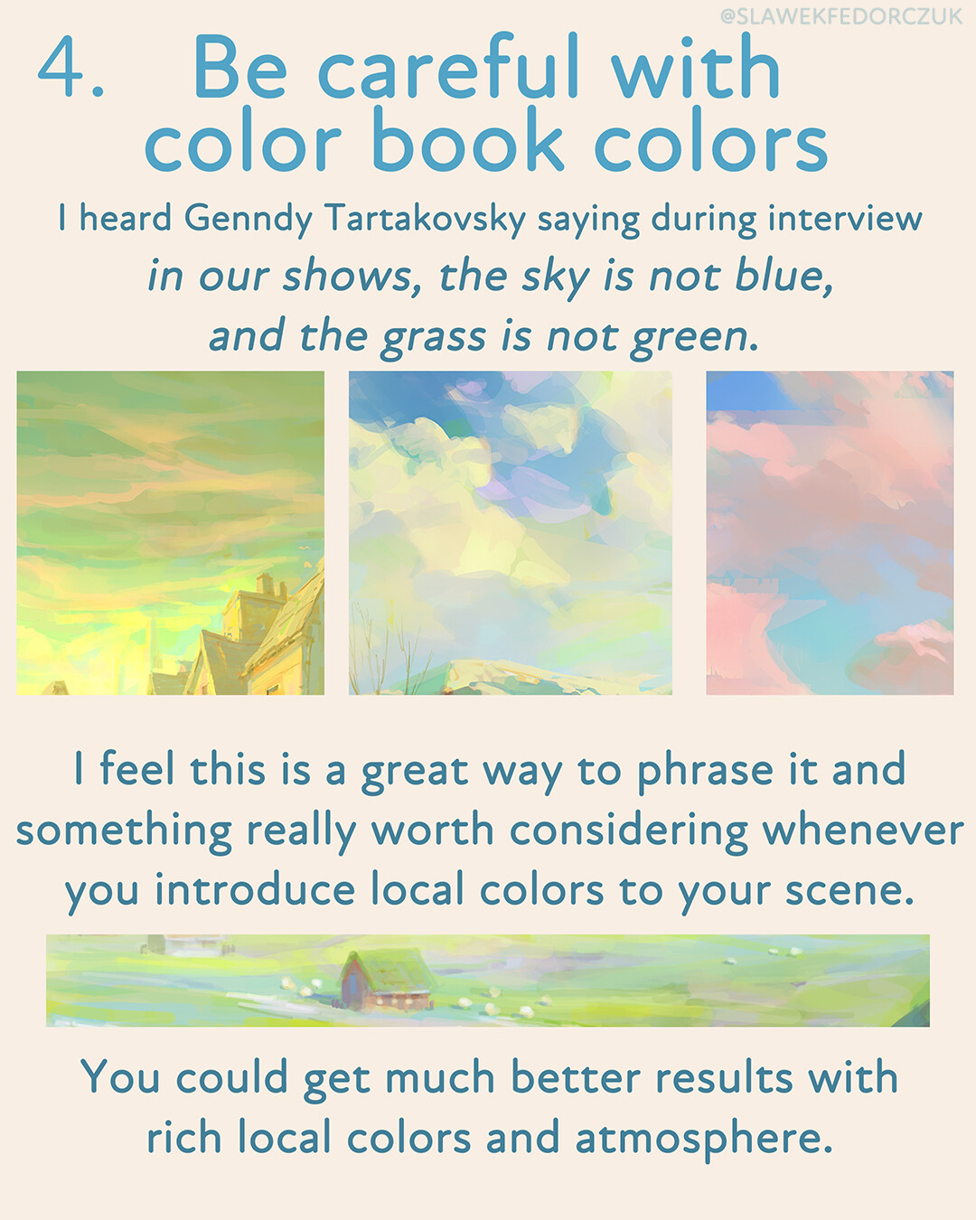 - 考虑因素包括:情绪、地点、当地色彩特色、阴影颜色、光照颜色等
