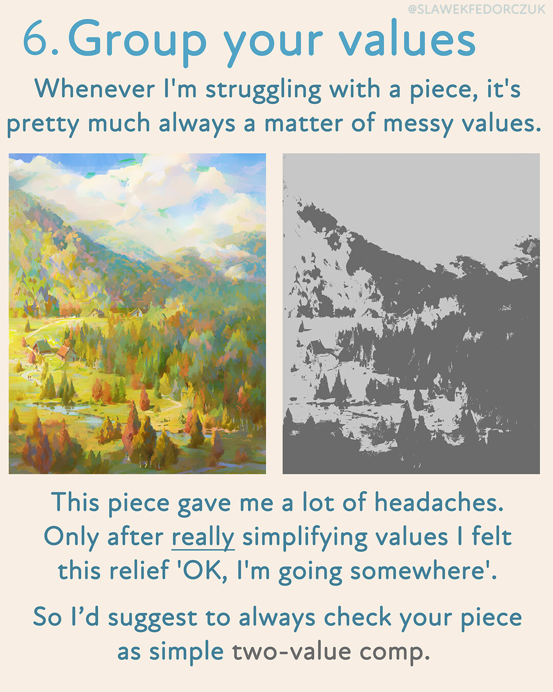 - 防止因为不断添加细节而破坏整体的色彩价值关系