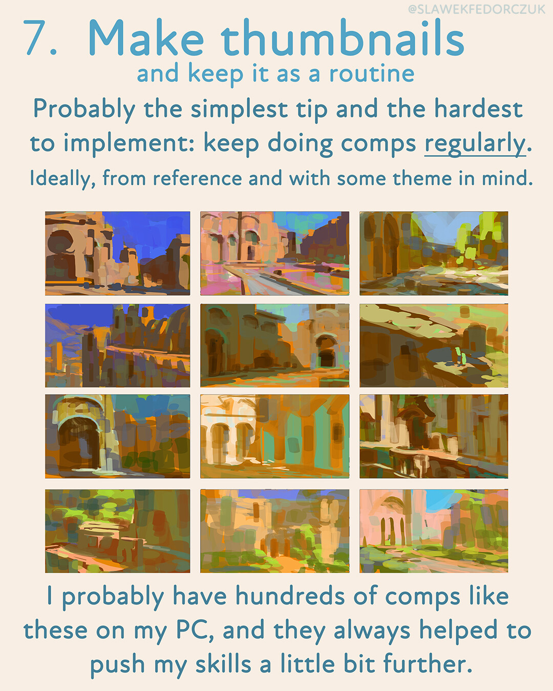 - 这些练习是寻找更好构图和色彩搭配的重要过程